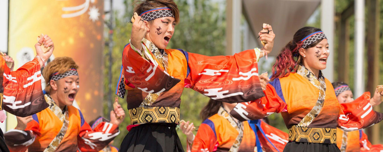 なかでも「よさこい祭」は全国的な広がりを見せはじめた頃から関連オフィシャルグッズの企画提案をはじめ、物販ブース等の出店サポートや祭事を盛り上げる仕掛けづくりに協力しています。